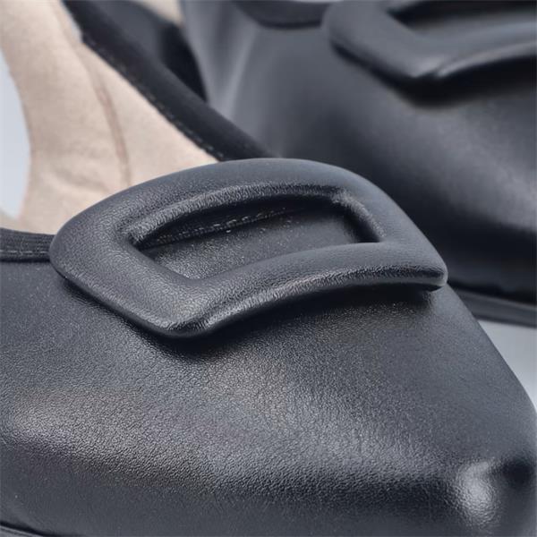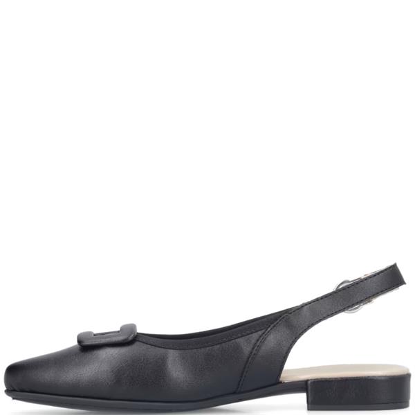 A lightweight and elegant flat shoe designed for everyday comfort. Finished in versatile black with a secure buckle fastening for a refined look.