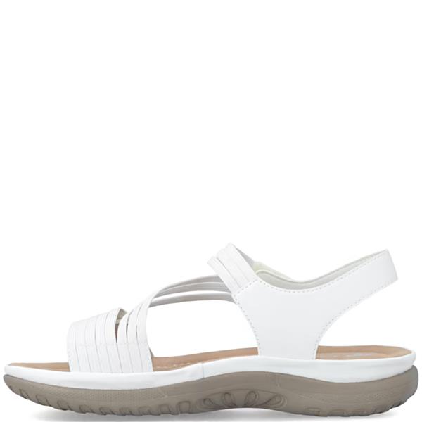 A lightweight and comfortable flat sandal designed for everyday summer wear. Finished in classic white with adjustable fastening for a secure and practical fit.