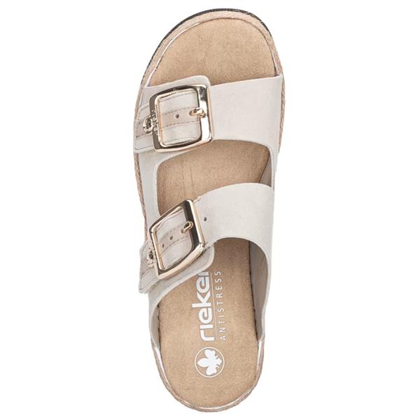 The Rieker Women's Wedge Slip-On Sandal in Beige offers a perfect blend of comfort, style, and ease. Featuring a sleek slip-on design, these sandals are easy to wear and provide a secure, comfortable fit. The wedge heel offers a subtle lift, while the cushioned insole and flexible rubber sole ensure all-day comfort. The classic black colour makes these sandals versatile and perfect for both casual and semi-formal summer outfits.