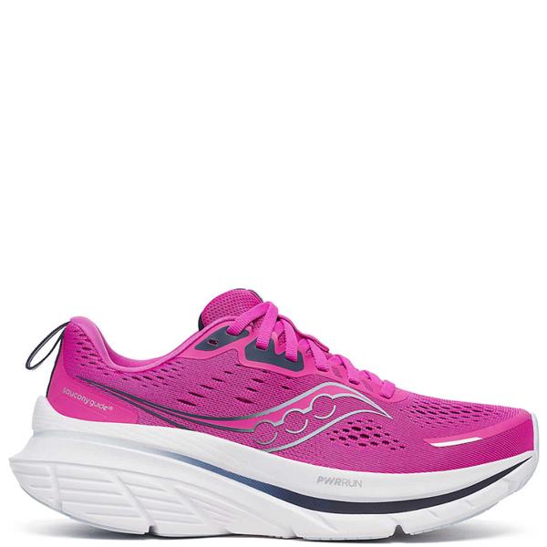 Push your run further with the Saucony Guide 18 in vibrant Fuchsia. Designed with enhanced PWRRUN cushioning for superior comfort and shock absorption, this high-performance trainer features CentrePath™ technology to keep you stable and aligned with every stride. Built for confidence, comfort, and consistent motion.