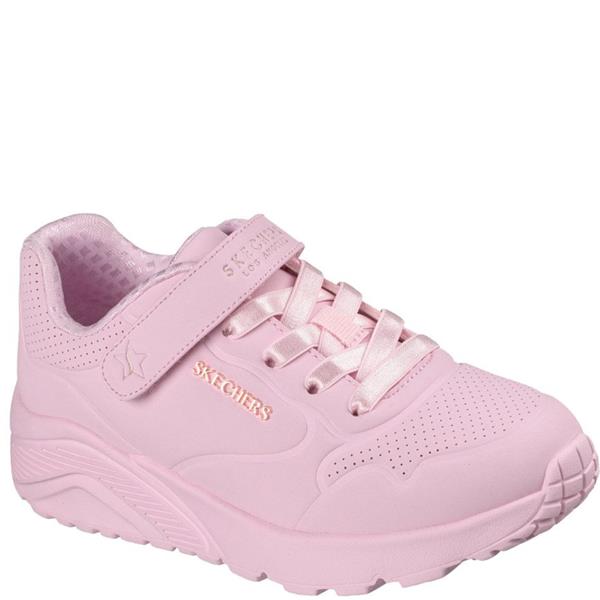 A lightweight and stylish trainer designed for everyday wear. Finished in a soft light pink colour, this Skechers style offers a simple, versatile look with comfortable support for active kids.