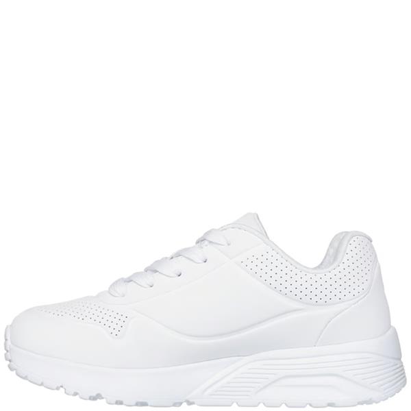 A bold and stylish trainer designed to stand out. Featuring the Skechers x JGoldcrown collaboration with iconic graffiti heart designs, this white multi sneaker combines creative flair with everyday comfort and a subtle wedge sole.