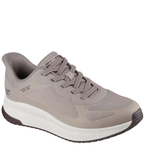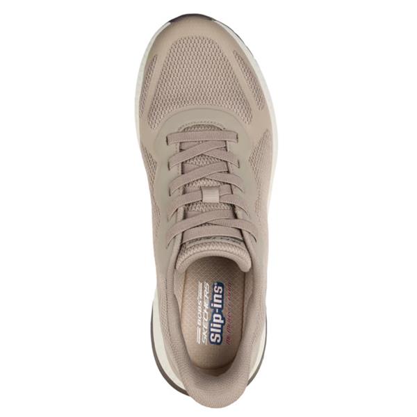 Step into effortless comfort with the Skechers Men's Lace Slip-Ins Trainer in Dark Taupe. Designed for hands-free wear, this trainer features Skechers Hands Free Slip-ins® technology and an Exclusive Heel Pillow™ to keep your foot securely in place. The Skechers Memory Foam™ cushioned insole ensures all-day comfort, while the knit upper with stretch laces provides a snug, breathable fit. A contoured shock-absorbing midsole and flexible traction outsole enhance stability and support. Plus, it’s machine washable for easy maintenance.