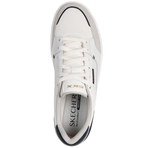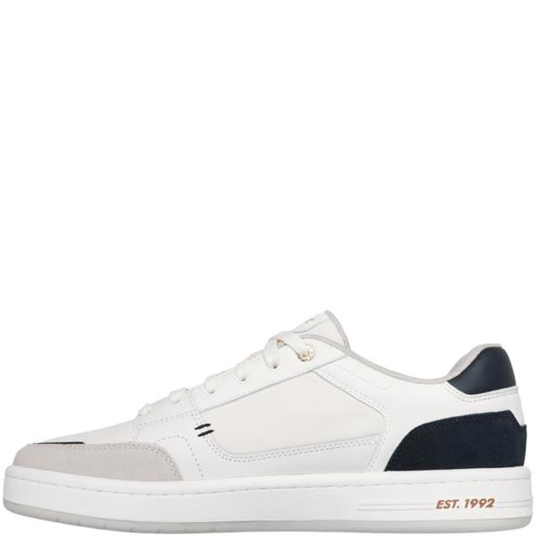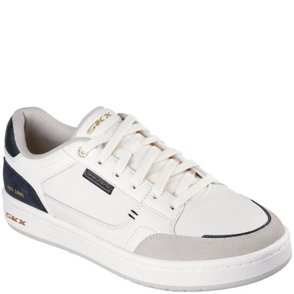 A laid-back trainer with a clean court-inspired look, this Skechers style is perfect for everyday wear. The mixed upper adds texture and character, while the cushioned insole keeps comfort at the forefront.
