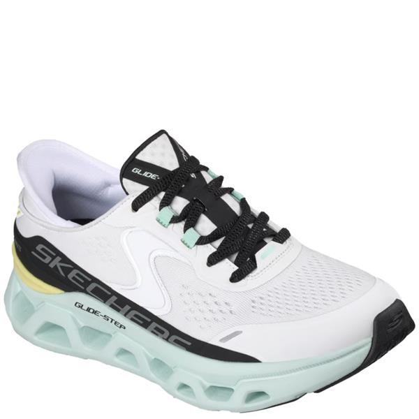 Skechers women’s Slip-ins® Lace Trainer in White Multi mesh, combining effortless style with hands-free convenience. Designed with Hands Free Slip-ins® technology and a Heel Pillow® for a secure fit, this trainer features a Glide-Step® geometric midsole for natural motion and an Air-Cooled Memory Foam® insole that cushions every step. Crafted with 100% vegan materials and a flexible traction outsole for reliable grip. Machine washable for easy maintenance.