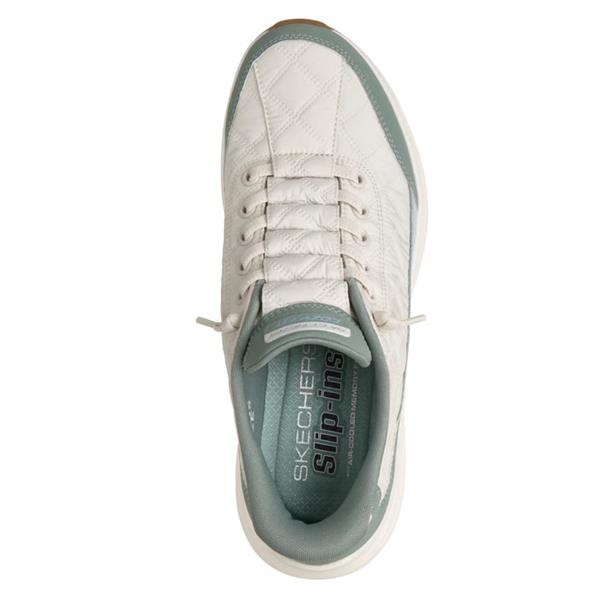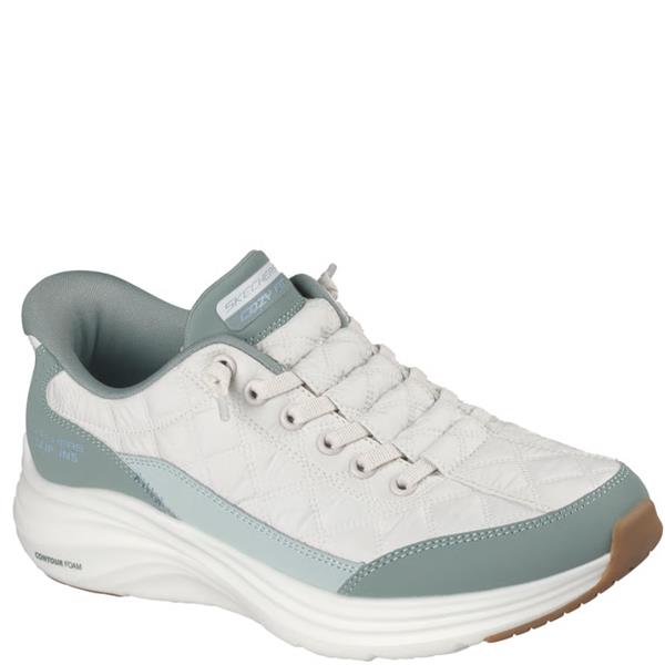 A casual trainer with Skechers Hands Free Slip-ins® technology for effortless wear. Featuring Cozy Fit™ quilted materials that wrap the foot in softness, it combines a Contour Foam™ lightweight midsole with an Air-Cooled Memory Foam® insole for adaptive cushioning. The Heel Pillow® ensures a secure fit, while the tied-off stretch laces and flexible traction outsole complete the design. Machine washable for easy care.