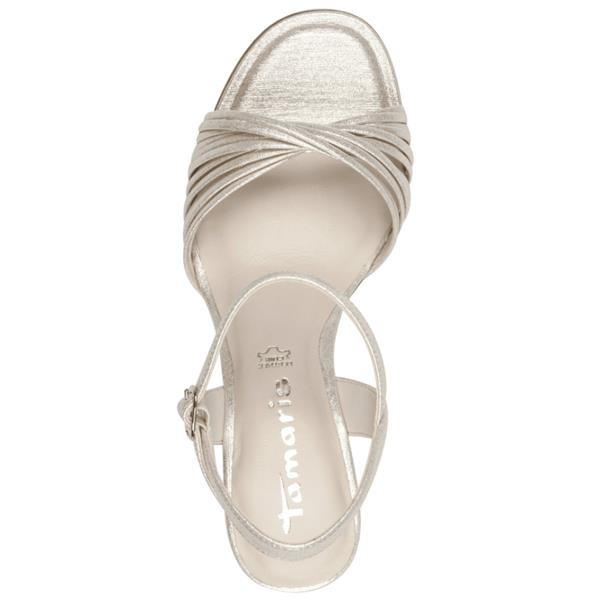 Add a soft shimmer to your occasion wardrobe with this Tamaris mid heel sandal in elegant Champagne. The feminine strap design and comfort-focused technology make it a stylish choice for weddings, parties and dressy evening looks.