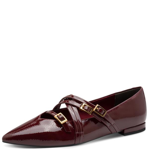 Tamaris Tamaris Womens Flat Strap Shoe - Merlot Patent