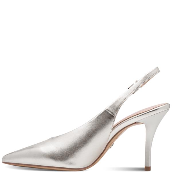 Step into occasion-ready elegance with this Tamaris slingback heel in a refined Platinum finish. The sleek silhouette and soft Touch-It comfort make it a sophisticated choice for events, evenings and dressier looks.