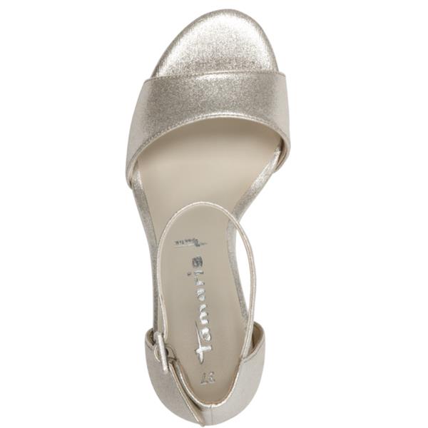 dd a sophisticated sparkle to your wardrobe with these Tamaris mid-heel sandals in a radiant champagne finish. Designed for both elegance and comfort, they feature delicate straps and a refined silhouette ideal for weddings, parties, or evenings out. The 8.5 cm heel provides an elevated yet wearable lift. Crafted entirely from vegan materials, they’re a stylish and ethical choice.