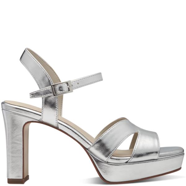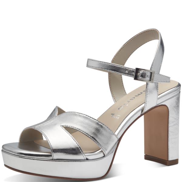 Tamaris Tamaris Womens Mid Heel Strap Sandal - Silver