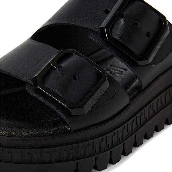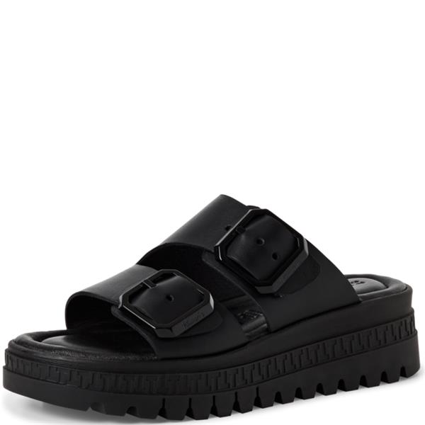 Tamaris Tamaris Womens Wedge Strap Sandal - Black Leather