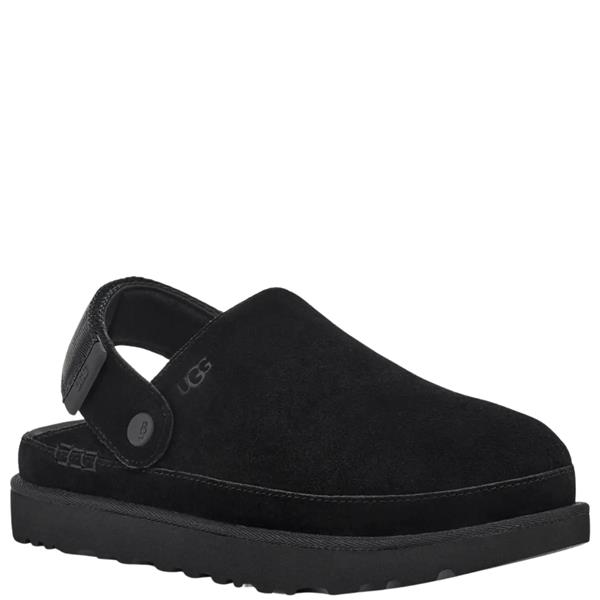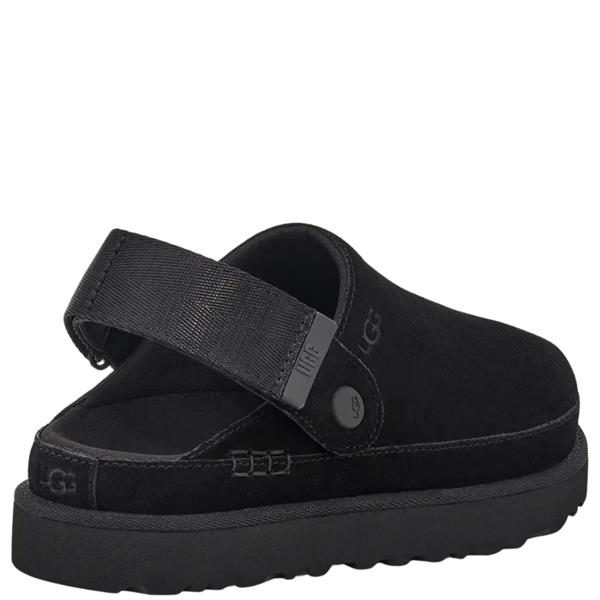 Inspired by the iconic UGG® Classic boot, the UGG Women’s Strap Slipper – Black (style Goldenstar) blends casual style with all-day comfort. Made with a smooth suede upper and lightweight sugarcane EVA outsole, it features an adjustable hook-and-loop heel strap and anti-odor recycled textile lining for a secure and fresh fit. Ideal for laid-back days at home or on the go.