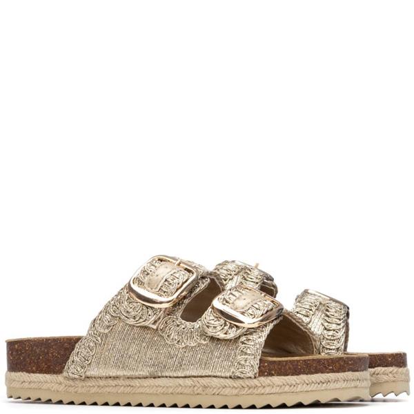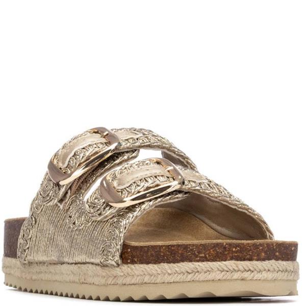 A stylish and lightweight flat sandal designed for effortless summer styling. Finished in elegant gold, this versatile design adds a touch of shine to everyday outfits.