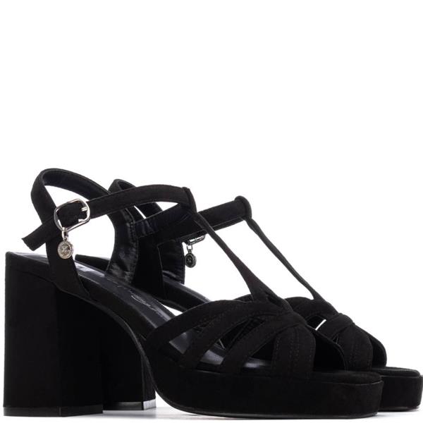 Xti Xti Womens High Heel Strap Sandal - Black Suede