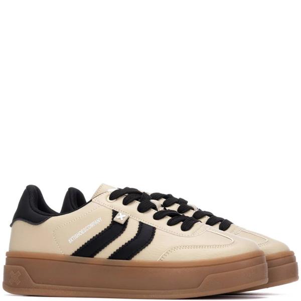 A fashionable lace-up trainer from Xti, crafted in synthetic material with a beige for a bold look. Featuring a chunky non-slip sole for added safety and comfort, and a removable insole for convenience. Certified vegan by PETA.