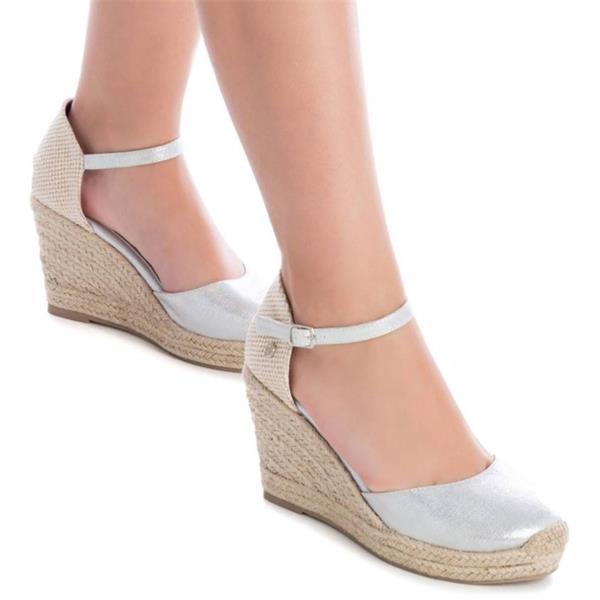 Elevate your summer look with the Xti Women's Wedge Ankle Strap Sandal in Silver. Crafted from a shimmering faux leather material, this refreshed espadrille style offers a sleek, modern update. The secure buckle ankle strap ensures a snug fit, while the 10 cm jute-wrapped wedge provides both height and seasonal flair. Finished with a non-slip rubber sole and certified vegan by PETA, it’s the perfect blend of fashion and ethics.